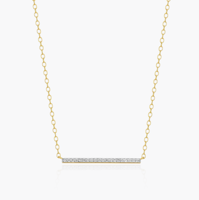 Sterling Silver Rhodium or Gold Plated Lab-Created Diamond Bar Necklace