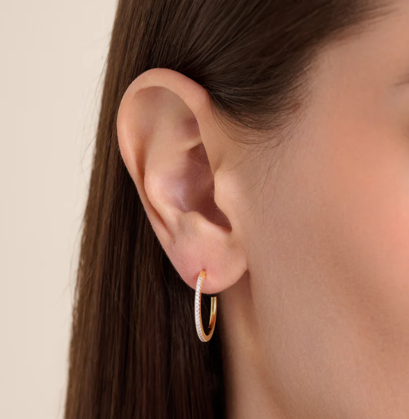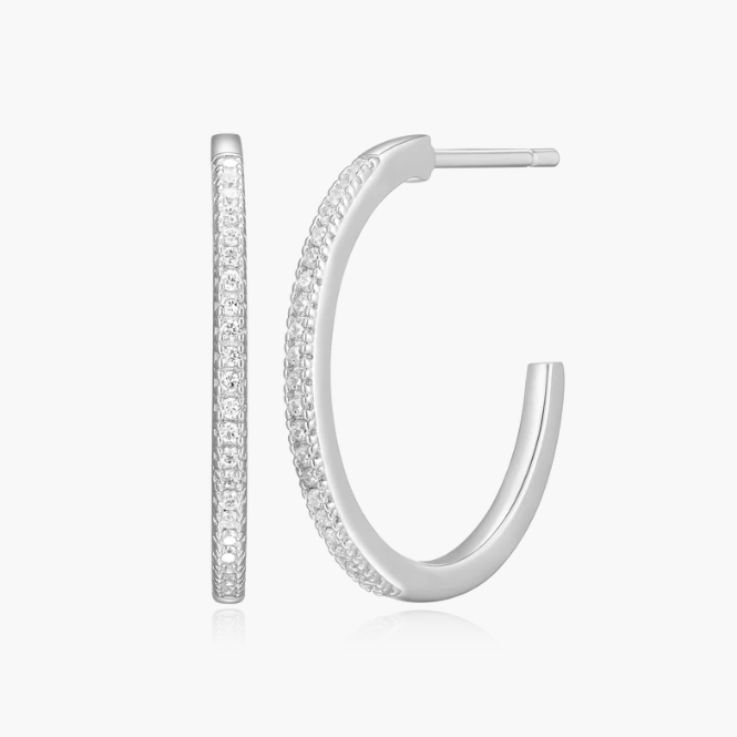 Sterling Silver Rhodium or Gold Plated Lab-Created .13ctw Diamond Hoop Earrings