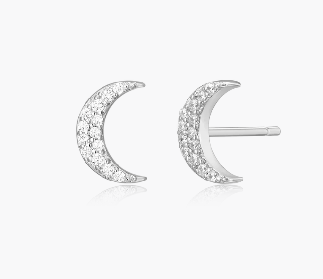 Sterling Silver Rhodium or Gold Plated Lab-Created .10ctw Diamond Crescent Stud Earrings