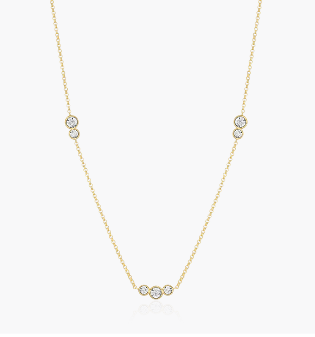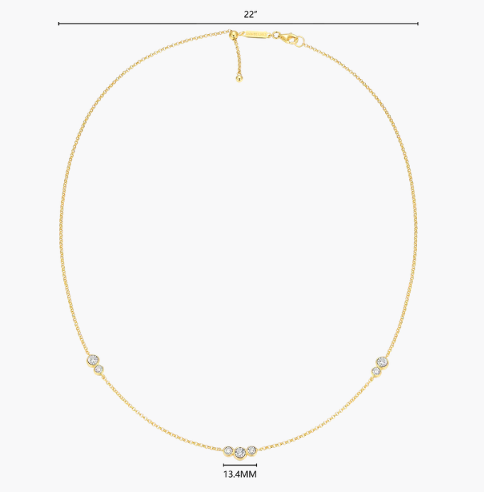 Sterling Silver Rhodium or Gold Plated Trio Bezel Set .20ctw Lab-Created Diamond Station Necklace. Up to 22" Adjustable Length w/ Bolo Slider.
