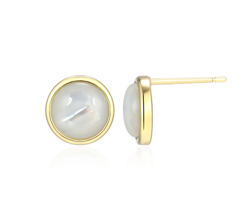 ELLE Gold Plated Sterling Silver Mother of Pearl Button Stud Earrings (SI8333)