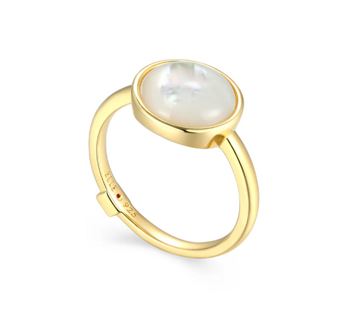 ELLE Gold Plated Sterling Silver Mother of Pearl Button Ring (SI8350)