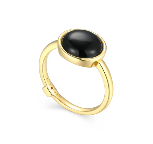 ELLE Gold Plated Sterling Silver Black Agate Button Ring