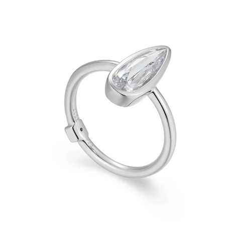 ELLE Rhodium Plated Sterling Silver Faceted CZ Teardrop Ring (SI8348)