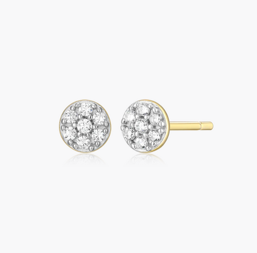 Sterling Silver Rhodium or Gold Plated Petite Lab-Created Pave Diamond Round Stud Earrings