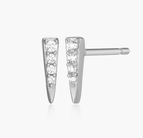 Sterling Silver Rhodium or Gold Plated Petite Lab-Created Diamond Triangle Stud Earrings