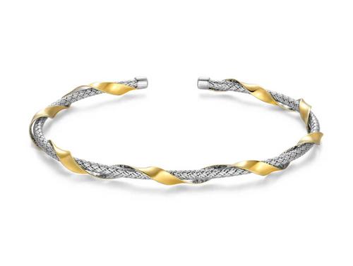 Two Tone Rhodium Plated & Gold Plated Sterling Silver Twisted Cuff Bracelet