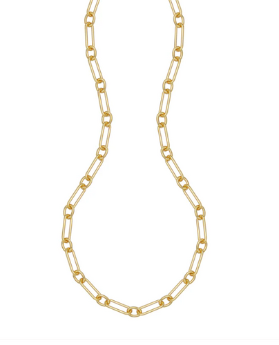 Gold Plated Sterling Silver Elongated & Round Link Chain Necklace
