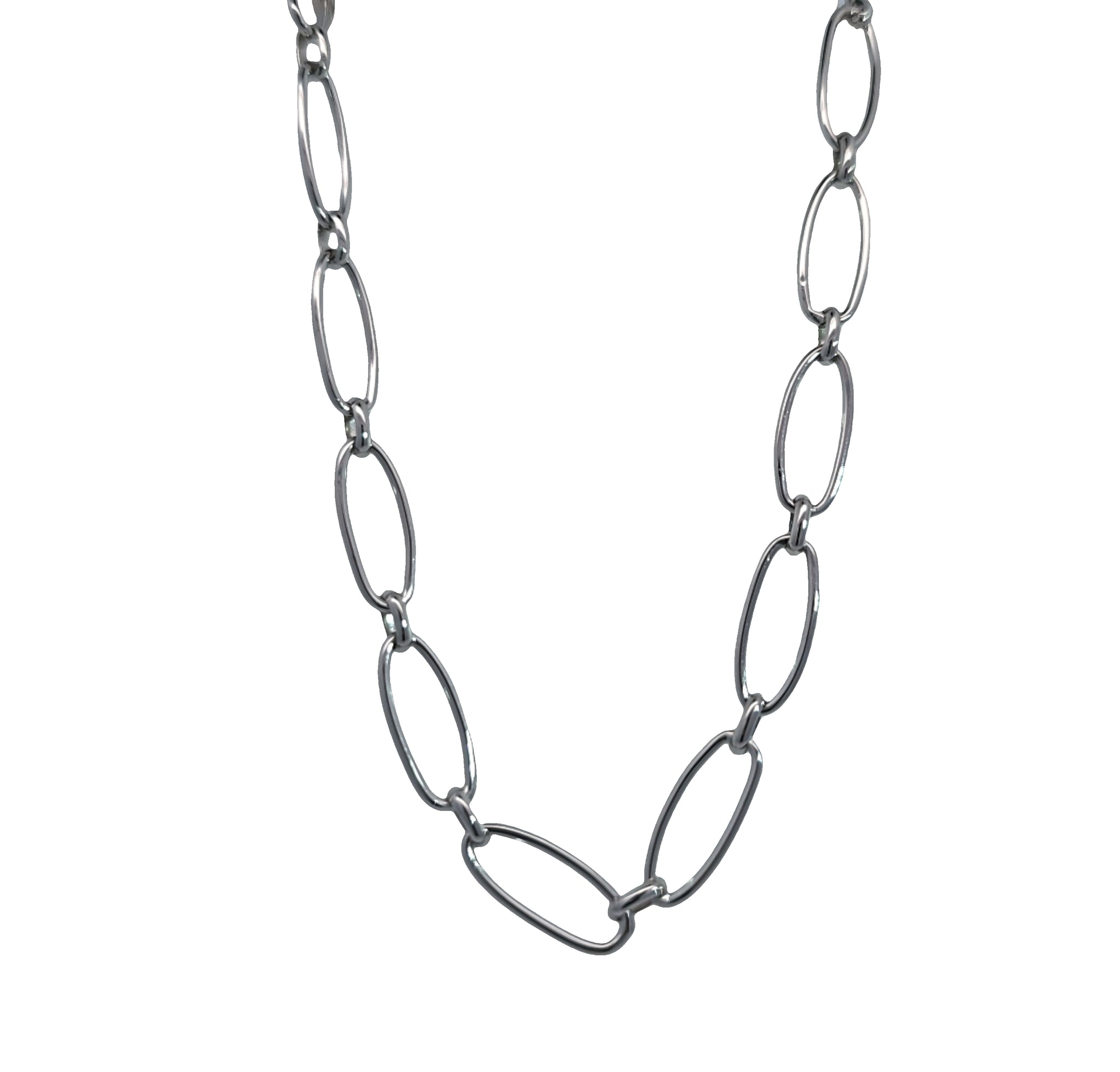 Gold Plated or Rhodium Plated Sterling Silver Oblong Chain Necklace. 18" Total Length